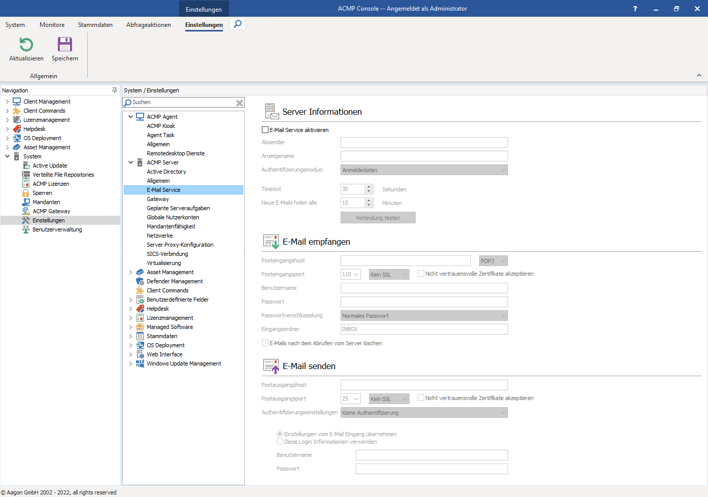 Dieser Bereich ermöglicht es Ihnen die Entlastung Ihres ACMP Server.