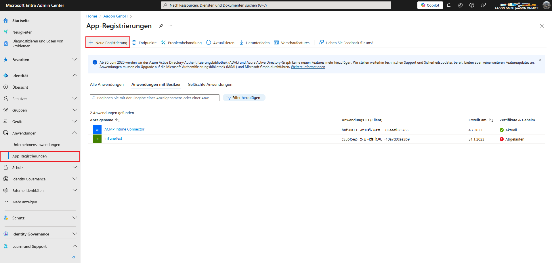 App-Registrierungen in Microsoft Entra ID